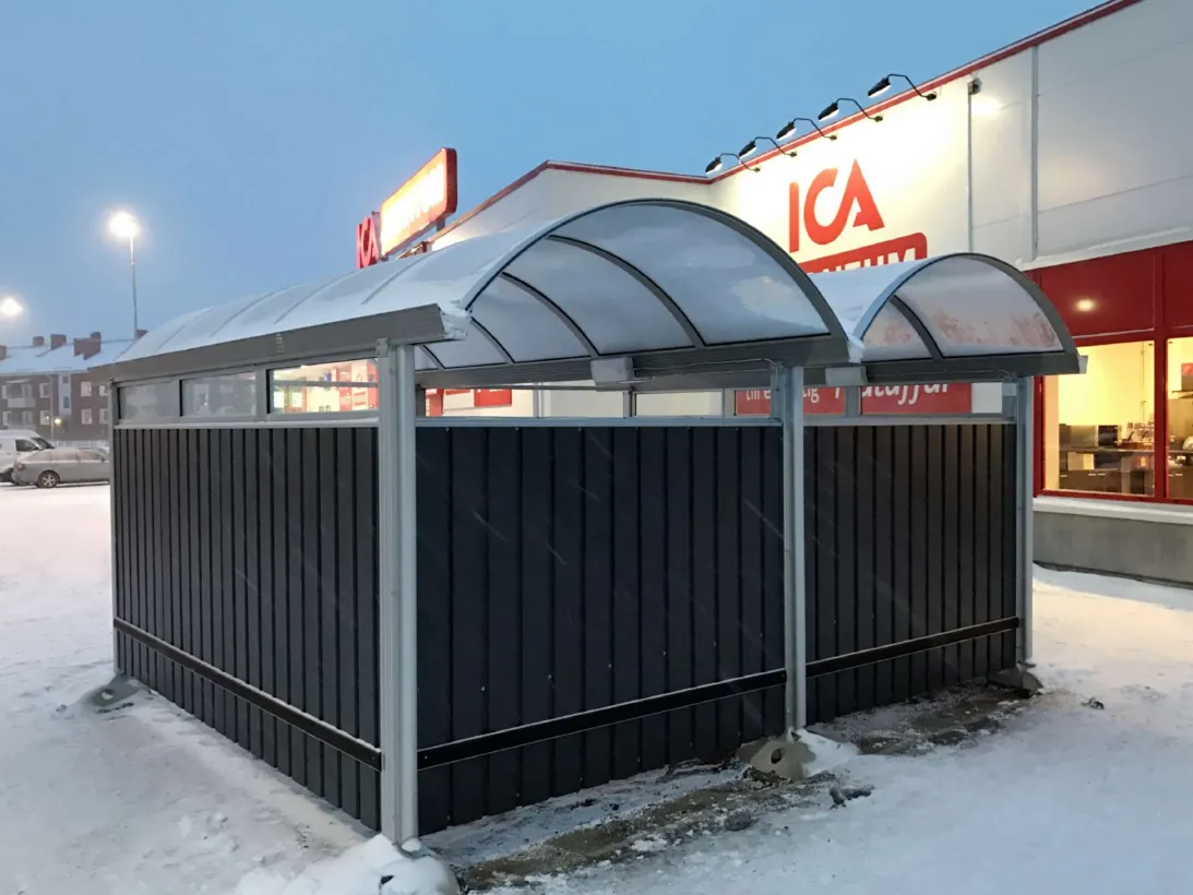 Dubbelgarage med bakre gavel med plats för 120 kundvagnar.